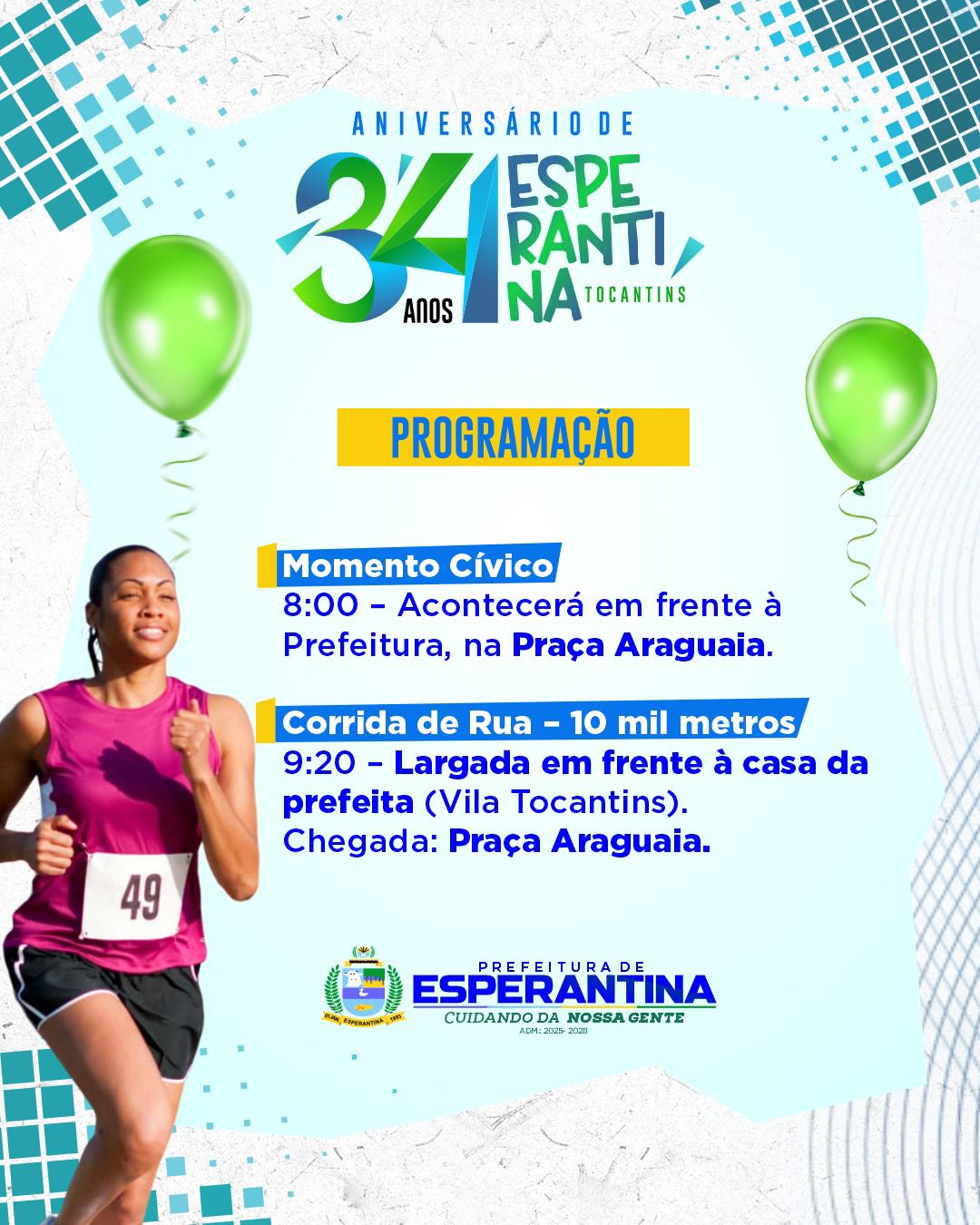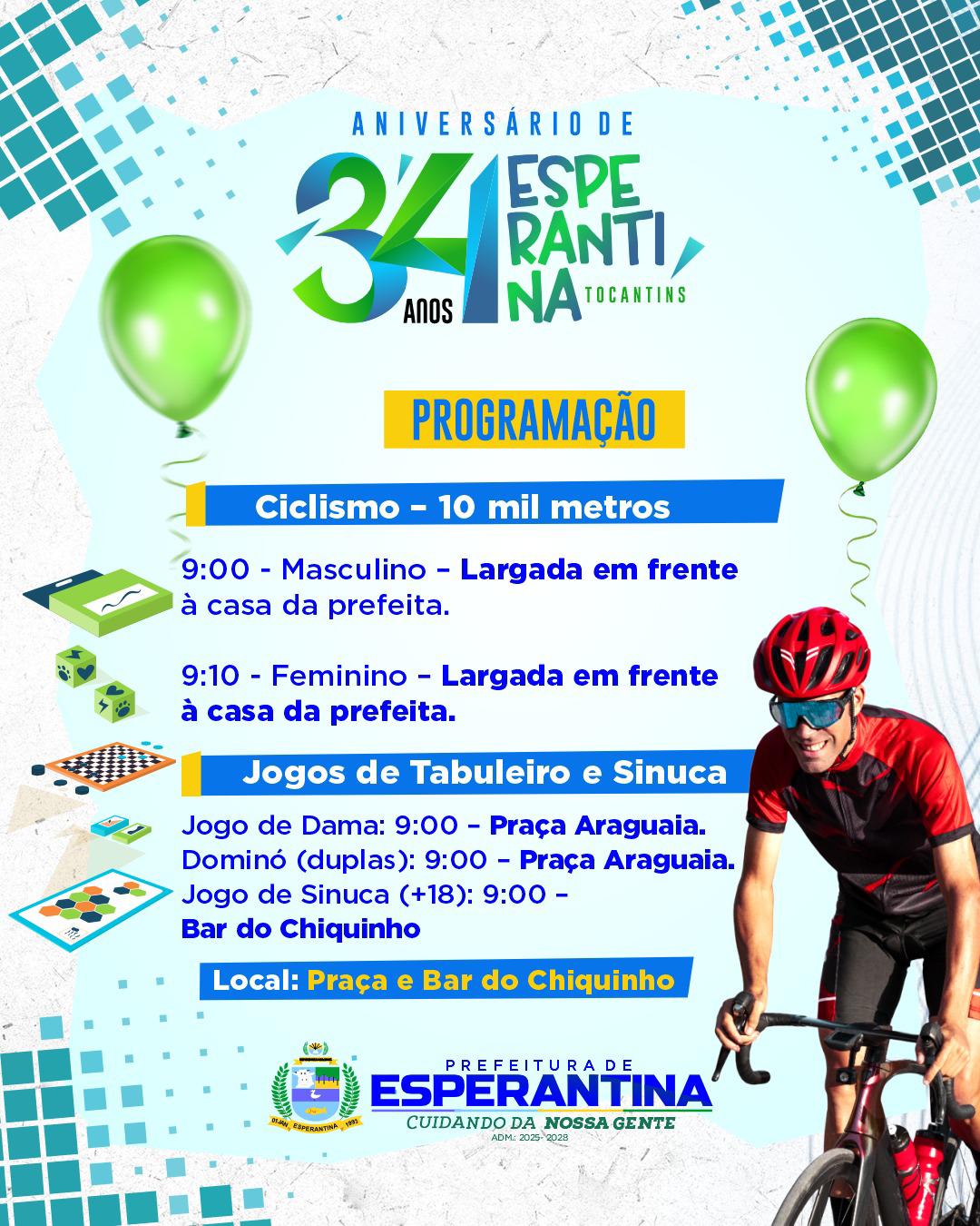 No dia 10 de fevereiro de 2025, a cidade de Esperantina, no estado do Tocantins, celebrará 34 anos. Para marcar essa data especial, a Prefeitura organizou uma programação repleta de atividades, promovendo integração e lazer para a população. As festividades acontecerão no dia 8 de fevereiro, com destaque para competições esportivas, que visam incentivar a prática de atividades físicas e o espírito de equipe entre os participantes, reforçando o orgulho e a identidade do município.