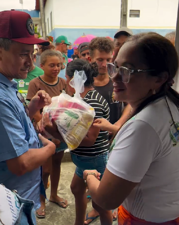 No início da tarde, a prefeita Tota e sua equipe realizaram a entrega de 500 cestas básicas às famílias da comunidade, reforçando o compromisso da gestão municipal com o bem-estar social e o apoio às pessoas em situação de vulnerabilidade.